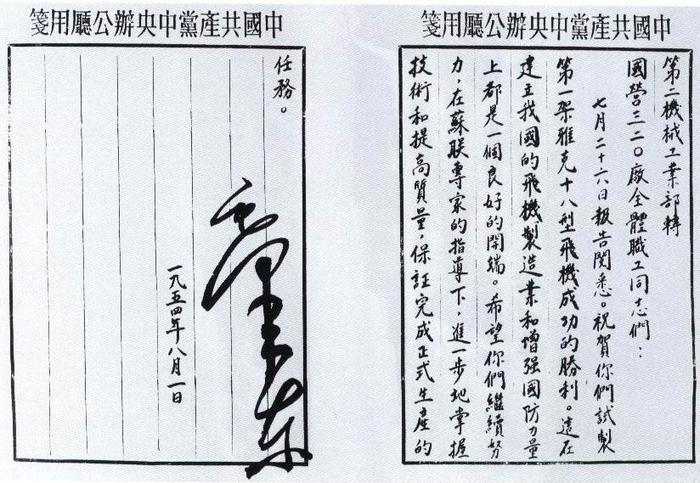 | 8月16日 | 新中国第一台航空发动机爱姆11在株洲试制成功。10月25日,毛泽东主席亲笔签署嘉勉信。 |