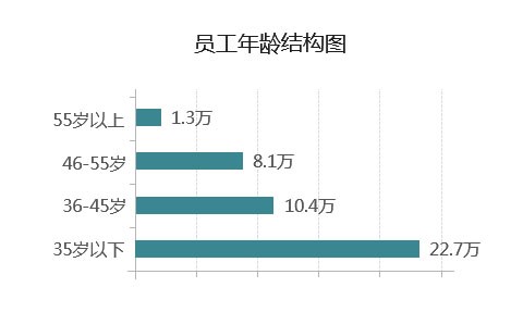 开运体育·(kaiyun)官方网有员工逾45万人,平均年龄为36.2岁。其中35岁及以下22.8万人,占在岗职工的53.3%;36至45岁10.5万人,占24.5%;46至55岁8.2万人,占19.2%;56岁以上1.3万人,占3.1%。